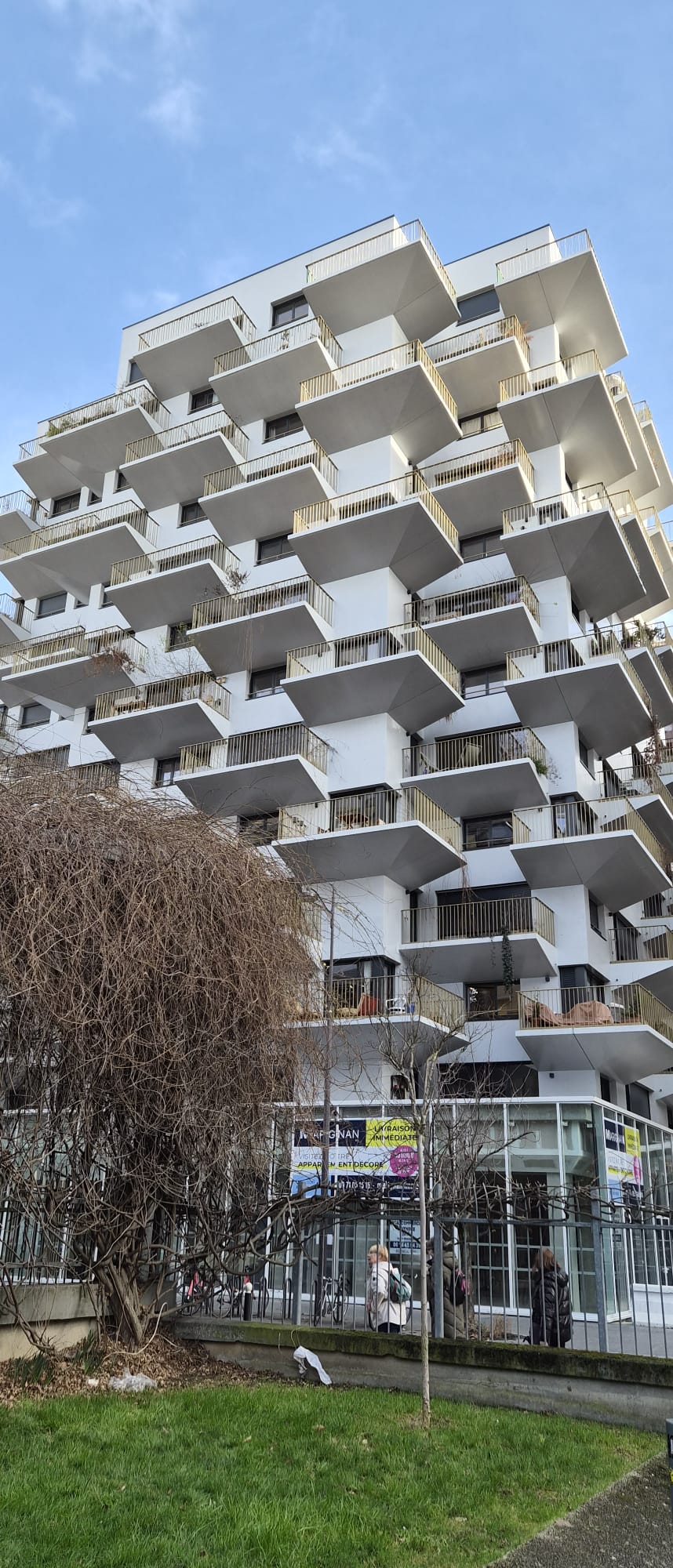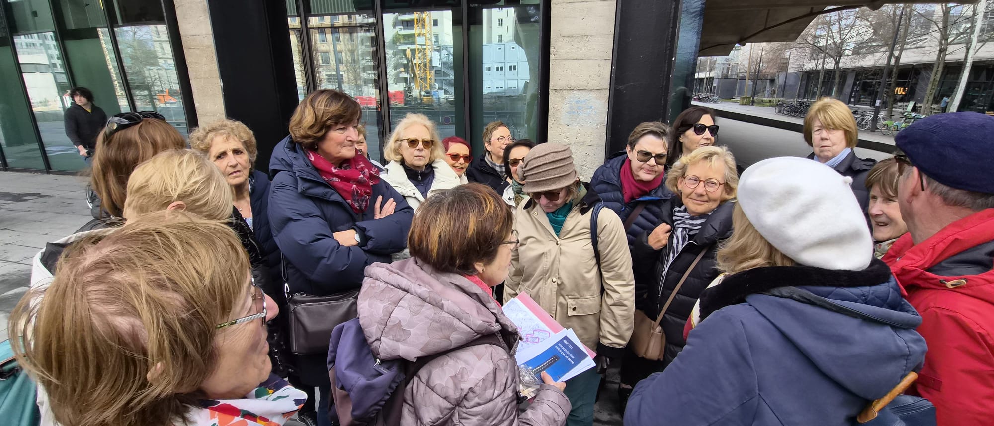 Le 6 février, notre balade culturelle nous a emmenés vers cette partie du 13ème arrondissement autour de la TGB (Très Grande Bibliothèque) qui a longtemps été appelée « La ZAC Rive Gauche ». Nous étions très nombreux (27, mais n’avons perdu personne) et le temps a été clément. Totale découverte pour les adhérents qui ne connaissaient pas. Entre les immeubles plus originaux les uns que les autres (les architectes de la fin du 20ème siècle et du début du 21ème s’en sont donné à cœur joie), et les jardins, nous avons pu retrouver quelques anciens bâtiments industriels qui n’ont finalement pas été démolis et ont été très astucieusement réutilisés : La Halle Freyssinet, qui est devenue une pépinière de start-ups, les grands moulins de Paris qui abritent maintenant une partie de l’Université et les Frigos qui sont en passe de devenir un haut lieu de la création artistique.